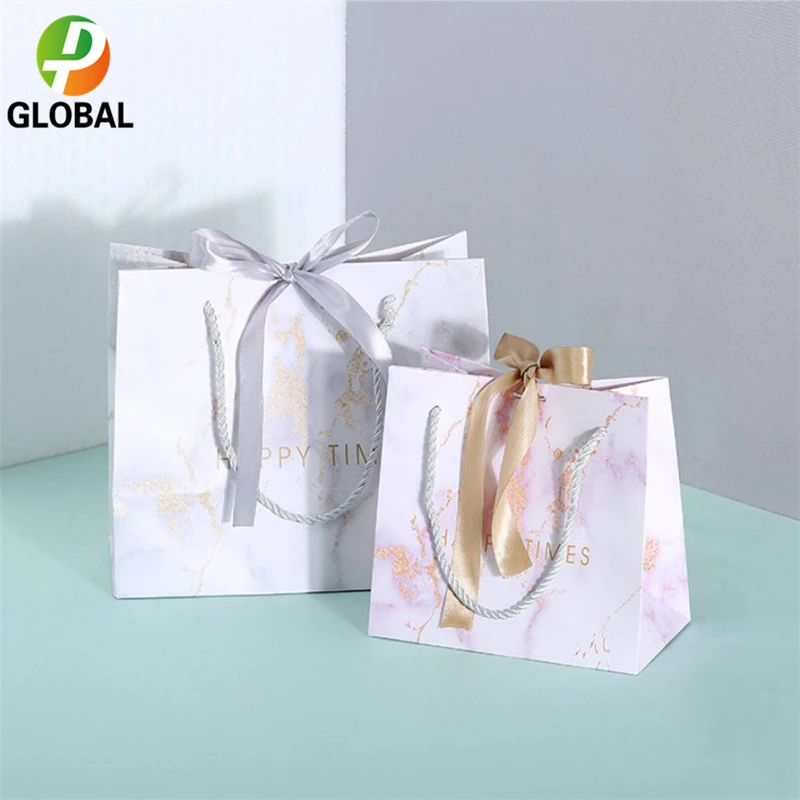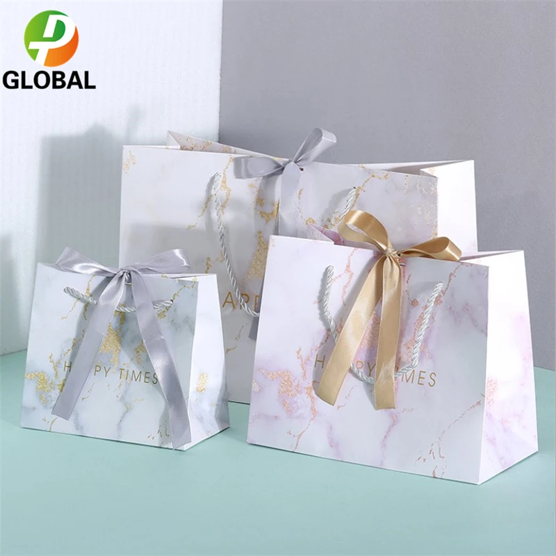 D&P 100pcs Marble Paper Gift Bags Garment Holiday Portable Shopping Bag Business Packaging Wedding