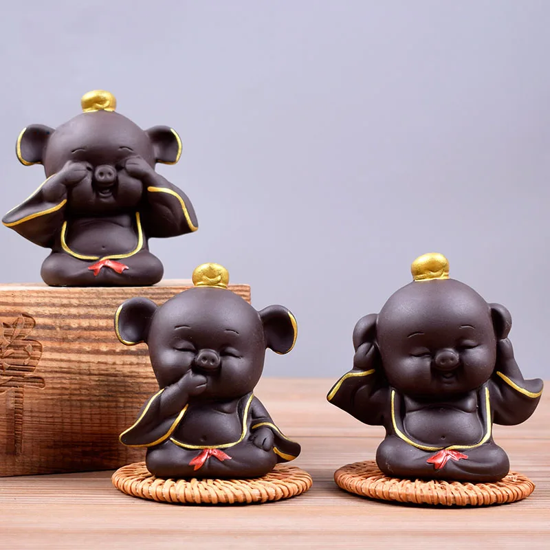 Tea Pet Pig Statue Purple Sand Crafts Animal Decoration Desk Decoration Home Decoration Holiday Gif