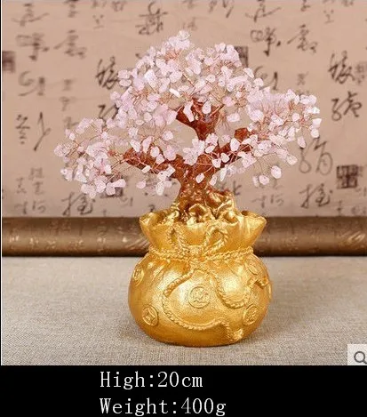 Lucky tree Holiday gifts natural rose quartz crystal gem money tree in for wealth money bay